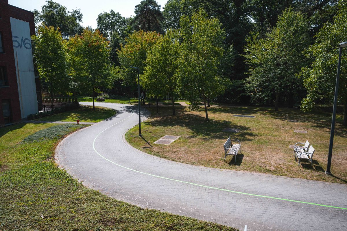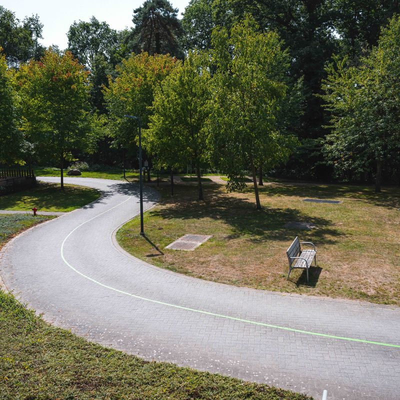 Deze 6,2 km lange wandeling laat je Genk-Centrum op een verrassende manier beleven. Via de groene lijn trek je niet alleen door het stadscentrum, maar ook door de omliggende wijken Molenblook en Vlakveld. Onderweg wisselen groene pleinen, gezellige woonwijken en bosrijke paden elkaar af, met als hoogtepunten het Molenvijverpark, het Emile Van Dorenmuseum en de Welzijnscampus Portavida.