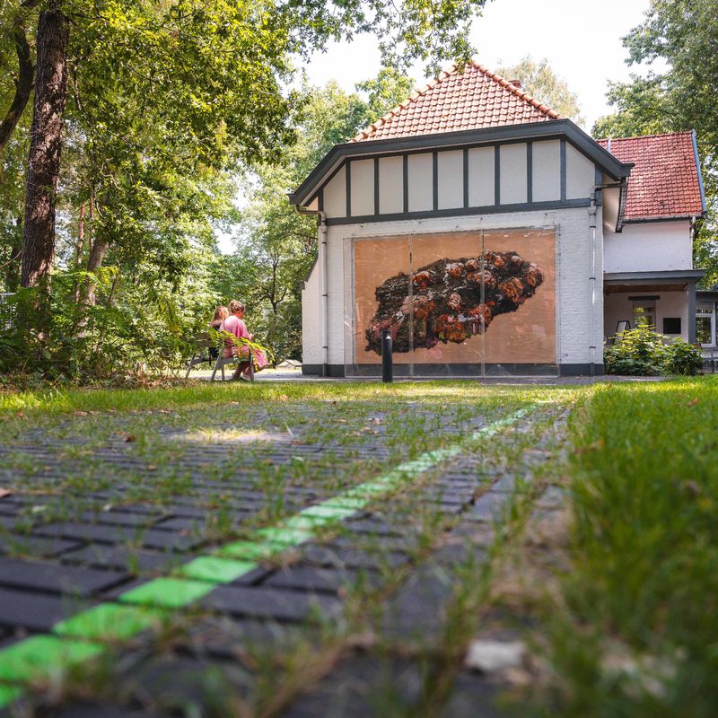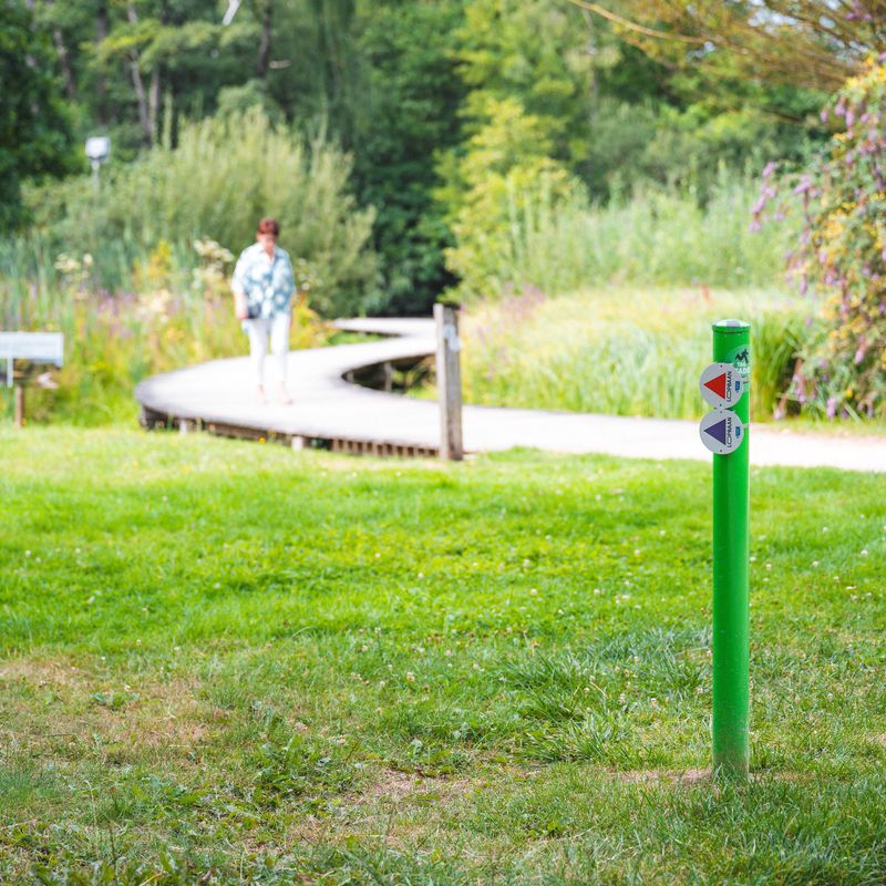 - Kom je met een buggy of rolstoel? Volg dan de stippellijn op de kaart en de pijltjes op de grond voor enkele alternatieve wegen